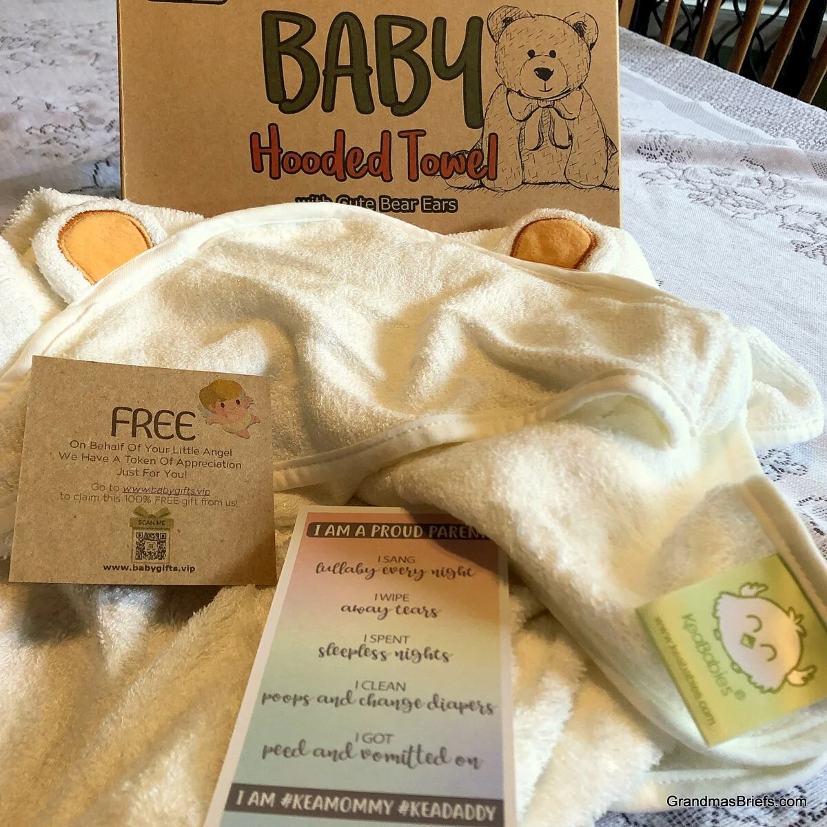 While hugs of most any sort with grandchildren are on hold for now, thanks to Covid, bath times for babes continue. Photos Mama Brianna sends me of Benjamin’s bath times are a sweet consolation to tide me over for now—especially the ones I share here of him wrapped up in the KeaBabies Hooded Towel with Cute Bear Ears I recently received free for review.